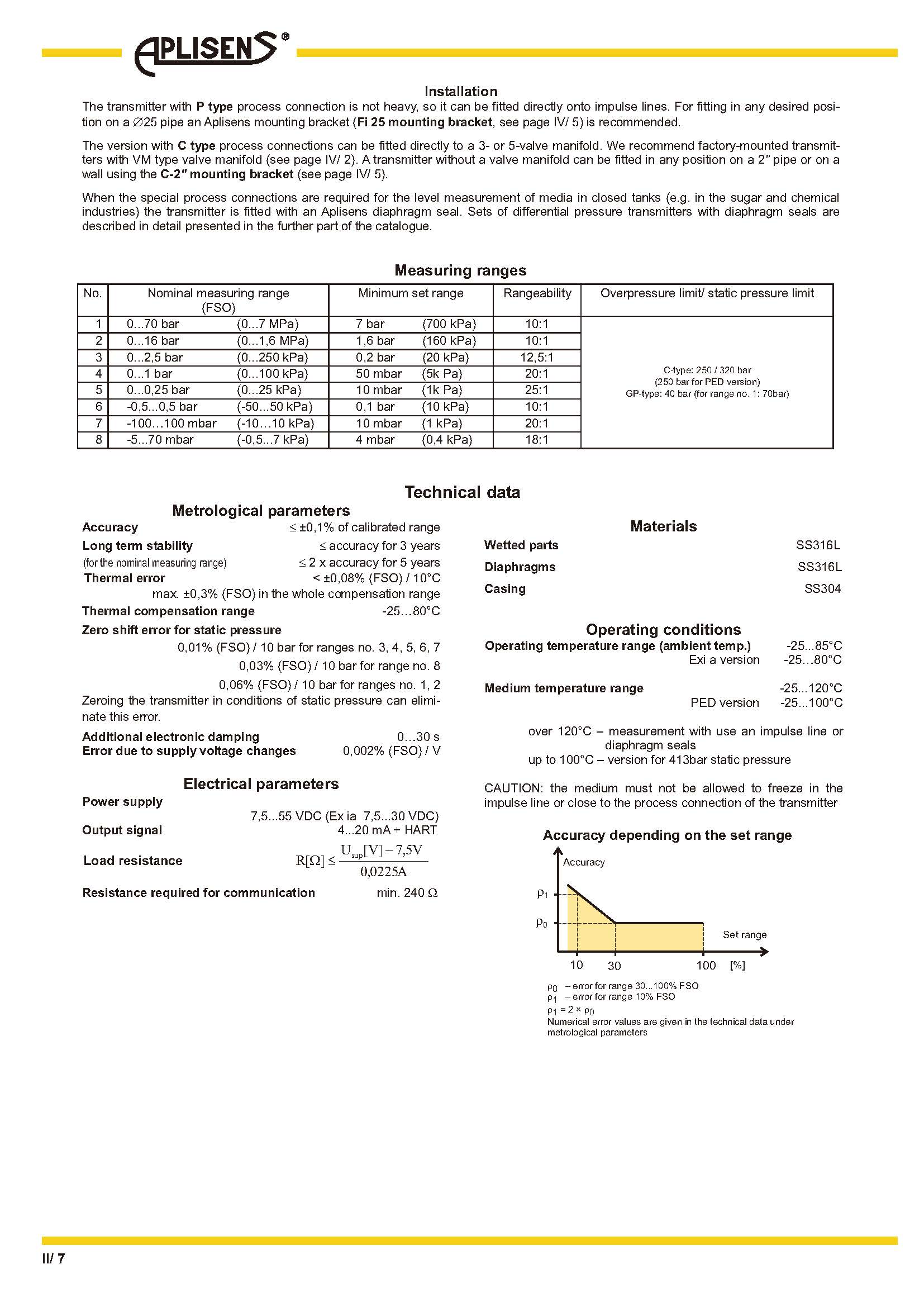 4…20 mA 輸出信號 + HART 協(xié)議ATEX 本質(zhì)安全靜壓極限高達 320 bar準確度 0.1%接液部件材料 316L