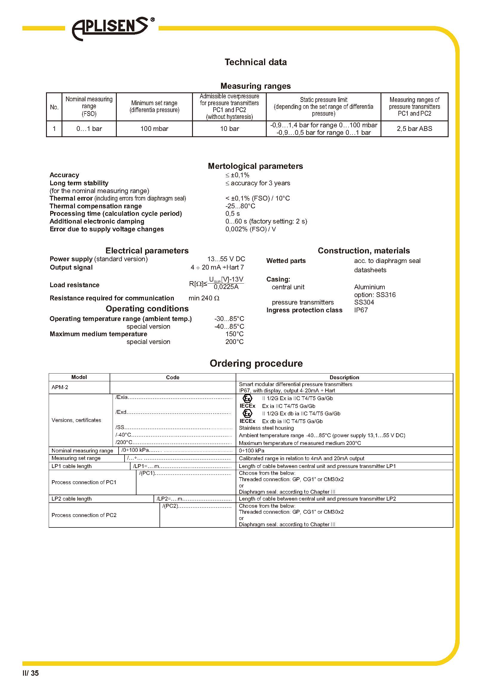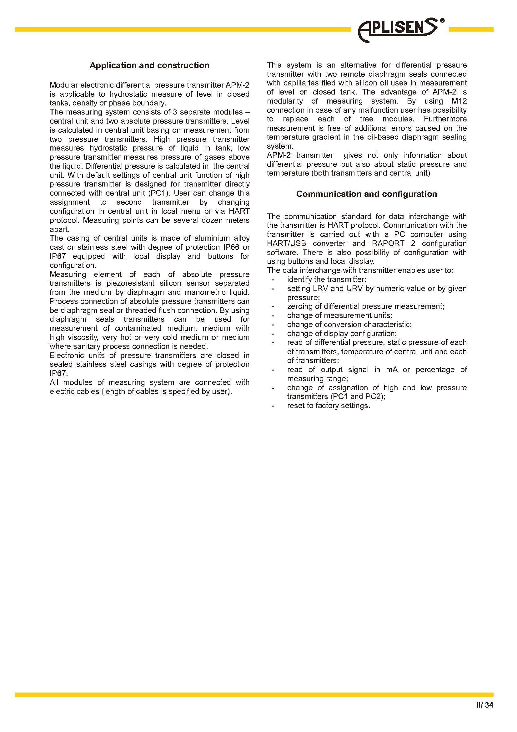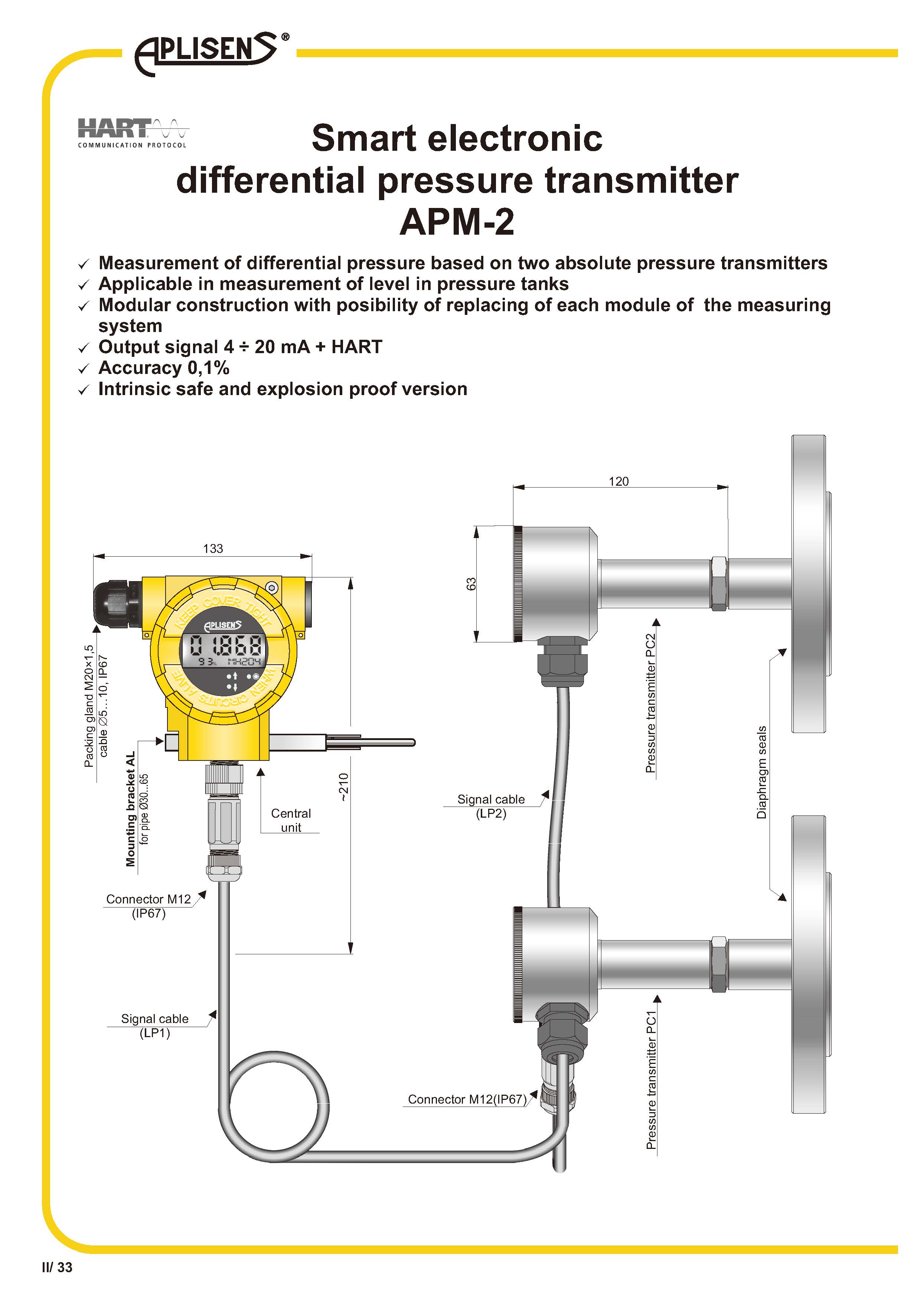 基于兩個(gè)絕對壓力變送器的差壓測量模塊化結構,可更換測量系統的每個(gè)模塊輸出信號 4 ÷ 20 mA + HART準確度 0.1%